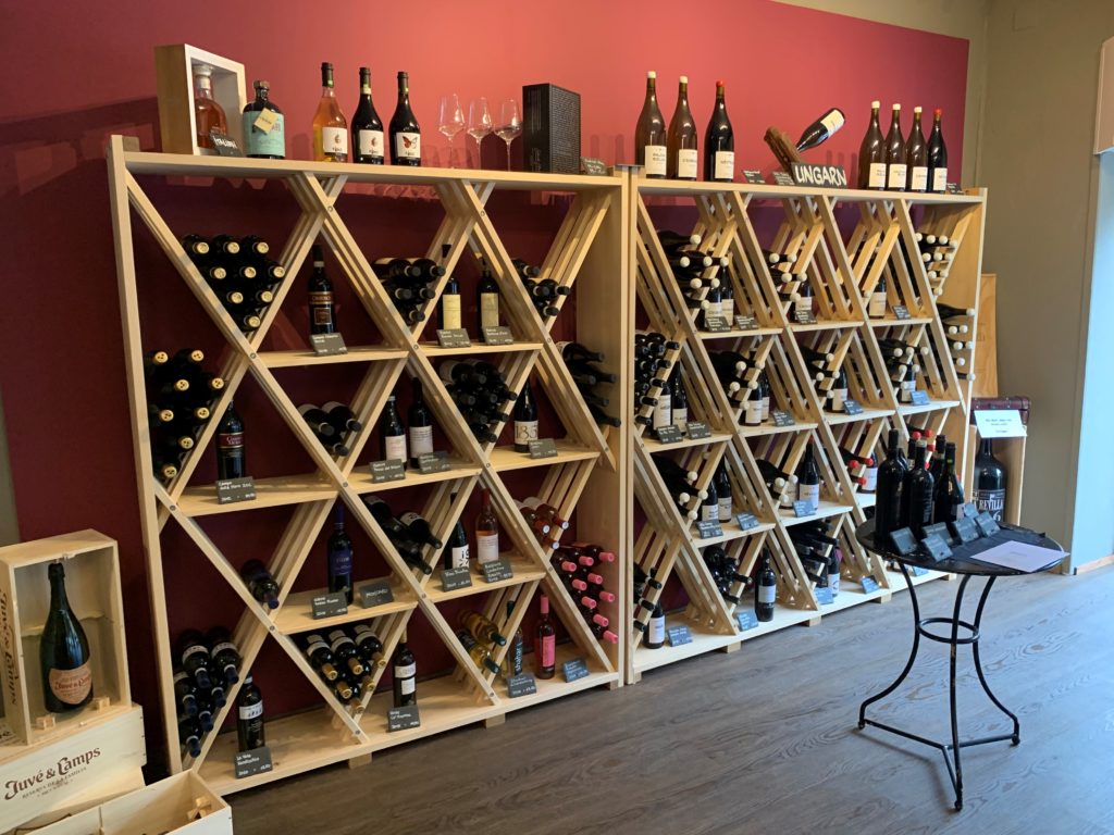 Etagère format L dans une vinothèque à Bâle